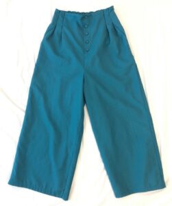 2021年 ブルーがかったきれいなグリーン色のワイドパンツ。