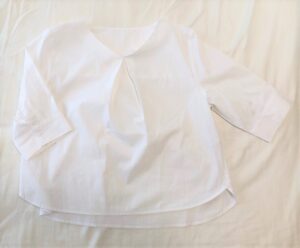2021年 5分袖の白いブラウスです。生地にハリがありよれよれならないところがよかったです。